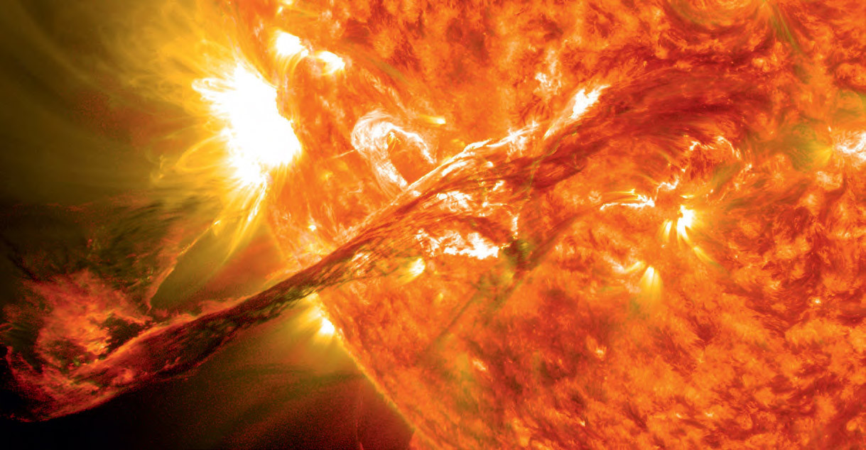 Солнце не такая уж и безобидная звезда. Да, светило дает нам энергию, благодаря которой на нашей планете поддерживается жизнь, но стоит Солнцу эту энергию увеличить, как все живое погибнет. Наше дневное светило представляет собой горячий газовый шар огромных размеров. Вращается он вокруг своей оси, но не так, как это делают планеты. Скорость вращения частей Солнца разная. Экватор движется быстрее, а полюса медленнее. Магнитное поле звезды особым образом закручивается вместе с плазмой и усиливается. Затем это поле начинает неравномерно подниматься на поверхность Солнца. В местах подъемов повышается солнечная активность, и возникают вспышки. Ученые выяснили, почему атмосфера Земли не превращается в кипящий океан огня во время вспышек на Солнце.