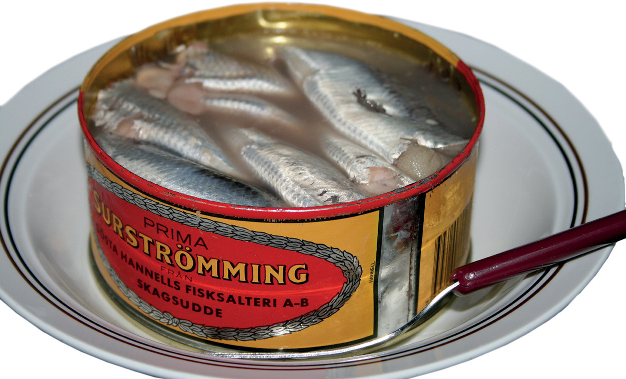Иногда то, что отвратительно пахнет, на самом деле может оказаться очень вкусным. «Нежный и деликатный» говорят об этом блюде те, кто его пробовал. Это национальный шведский специалитет сюрстрёмминг – слабосоленая ферментированная балтийская сельдь, традиционная для шведской кухни с XVI века. Если говорить точнее, это не селедка, а балтийская салака. Sur здесь означает «кислый», «квашеный», strömming – «балтийская сельдь». Чувство самосохранения обязательно напомнит о себе тем, кто впервые нюхает содержимое баночки. Едкий, ярко выраженный запах гнилого, давно протухшего продукта как бы спрашивает: а ты точно хочешь это съесть?..