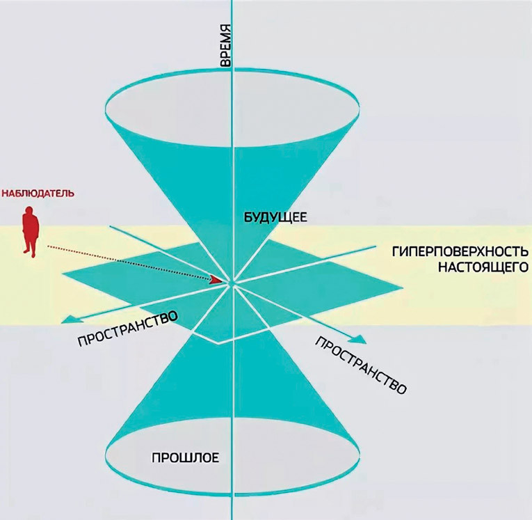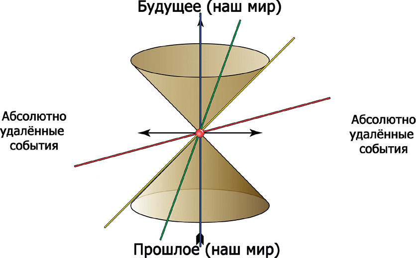 Световой конус – это область, в которой распространяются световые лучи, проходящие через одну точку (наблюдателя). Световой конус заключает в своем временном пространстве конус прошлого и конус будущего.