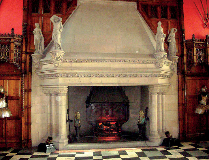 В Средние века главным достоинством камина стали его размеры. Он должен был быть настолько большим, чтобы на нем можно было зажарить быка. Внешний вид камина становился более оформленным, строились они прямо в стене, а дымоходная труба в форме перевернутой пирамиды опиралась на консоли или резные столбики.