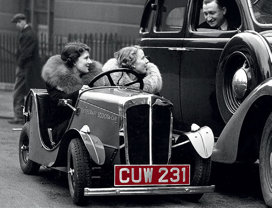Все началось с компании British Motor Boat Mfg Co Ltd, которая была в свое время просто помешана на миниатюрах. Она вообще занималась в основном моторными лодками. И ее любовь к миниатюрам вначале воплотилась в крошечных лодочках «scoota boat». А потом появились машинки Rytecraft Scootacar (в общем-то разновидность скутера). С 1934 по 1940 год их было выпущено около 1000. Часть «тиража» была оснащена 98-кубовым одноцилиндровым «воздушником» марки Villiers, а часть – электродвигателем и аккумуляторной батареей. Привод был только на одном заднем колесе, а на втором колесе был установлен тормоз. Скорость этого инженерного чуда, в котором помещались двое взрослых, (длина Rytecraft Scootacar составляла 2,5 метра, ширина – 1 метр) составляла около 25 км/ч. Машинка была настолько низкой, что легко проезжала… под прицепом. Что запечатлено на старых фотографиях, снятых на улицах Лондона. А сами машинки можно увидеть разве что в музейных экспозициях или в частных коллекциях.