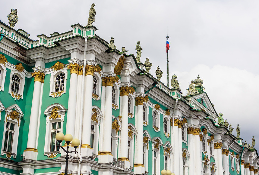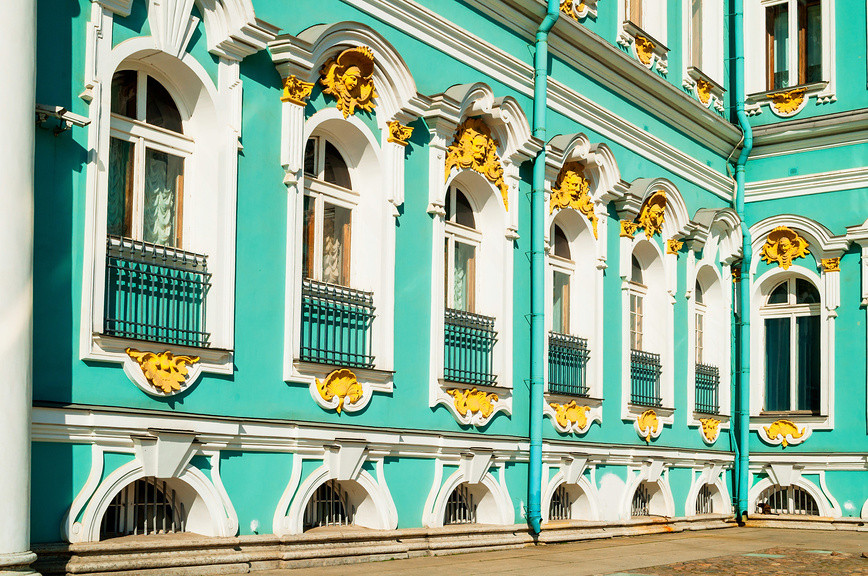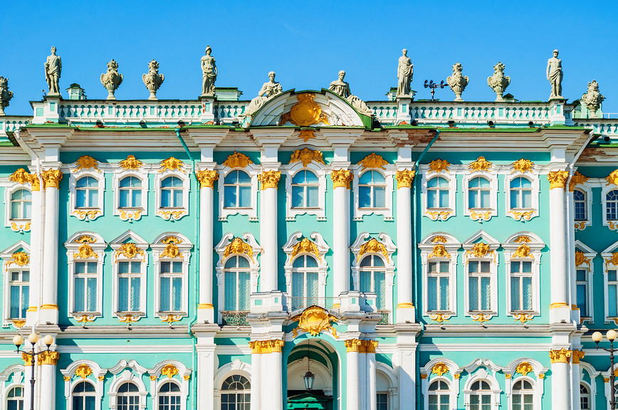 При Елизавете Петровне Зимний дворец достроить не удалось. Принимала его Екатерина II в 1762 году. Интересно, что светло-изумрудный оттенок, в который выкрашен Эрмитаж сегодня, не оригинальный. Сначала в оформлении фасада преобладали оттенки желтого, в XIX веке — кораллово-красные и кирпичные, а в годы Великой Отечественной войны Зимний дворец замаскировали серой краской. Современный вид Эрмитаж приобрел уже после войны.