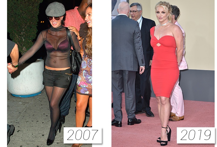 Бритни, звезда Disney, с начала своей карьеры была настоящий поп-идолом, чей стиль с особым пристрастием копировали девочки-подростки (редкая комната обходилась без постера с ней). Но слава - тяжелое бремя, которое непросто нести, особенно если знаменитым становишься в раннем детстве. 2007-й стал переломным годом в жизни звезды: ее часто замечали в неадекватном состоянии, фотографировали без белья и осуждали за дружбу с Пэрис Хилтон. В феврале того же года выходит таблоид Daily News, где изображена Бритни с бритой головой. Этому способствовала послеродовая депрессия и развод с Кевином Федерлайном. По решению суда бывшему супругу передали права на детей, а певица попала под арест из-за того, что скрылась с места ДТП. Бритни не сдалась, многократно лечилась в реабилитационных центрах и пыталась преодолеть алкогольную и наркотическую зависимости. Сейчас уже с трудом можно вспомнить то время, когда певица выходила в свет с нерасчесанными волосами, синяками под глазами, в безразмерных штанах и растянутых майках. Она вернула свой статус секс-символа и снова появляется на красной дорожке в соблазнительных нарядах.