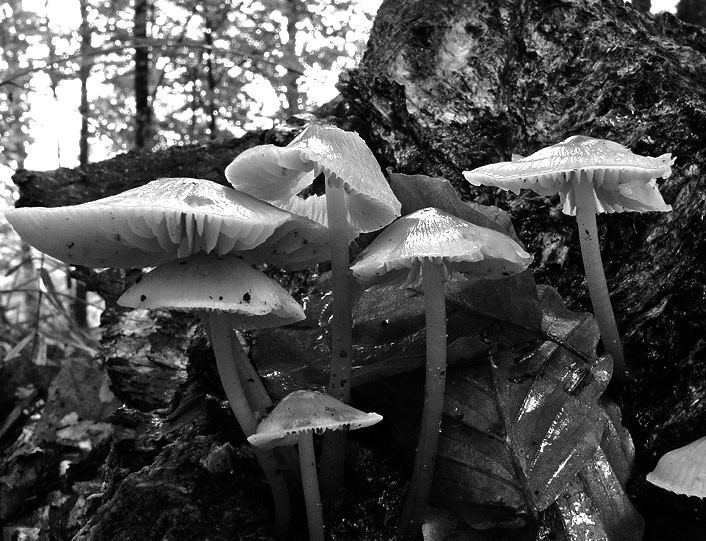 В. Б.: Известно, что светящиеся базидиомицеты являются грибами белой гнили, способными к деградации лигнина, и, как правило, являются сапрофитами (реже патогенами) растений. На разных стадиях жизненного цикла они излучают зеленоватый свет с максимумом эмиссии 520—530 нм. При этом у некоторых видов наблюдается свечение всего плодового тела; у иных видов может светиться только шляпка, или только ножка, или только мицелий и ризоморфы. Например, у представителей родов Mycena и Omphalotus могут одновременно светиться мицелий и плодовые тела, а у видов рода Armillaria светятся только мицелий и ризоморфы.