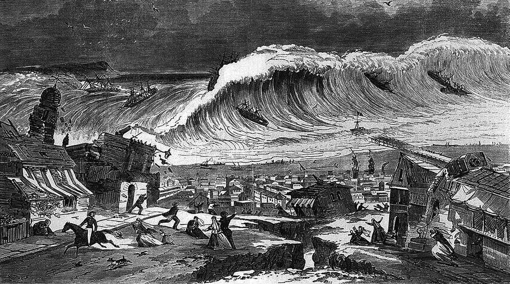 На этой гравюре 1888 года изображено цунами, обрушившееся на Лиссабон в 1755 году