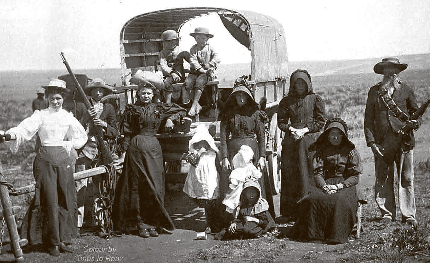 В скромной комнате с задернутыми шторами Крюгер ведет свой рассказ: «Мои предки жили долго и счастливо в Кейптауне двести лет, потом пришли англичане и забрали наши хозяйства. Пастухи сказали – это не может быть волей Бога, чтобы мы были в рабстве. Мы ушли вглубь Африки в поисках новой земли». На экране (фильм, разумеется, черно-белый) кибитки, мужчины в шляпах и с трубками в зубах, женщины с лицами красивой лепки, мальчишки, щелкающие бичами…