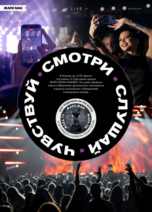 Ежемесячный журнал «ЖАРА» — первый российский развлекательный журнал, состоящий из живых репортажей и интерактивных материалов, посвященных музыке, кино, развлечениям и интересным лайфхакам из разных сфер современной жизни.